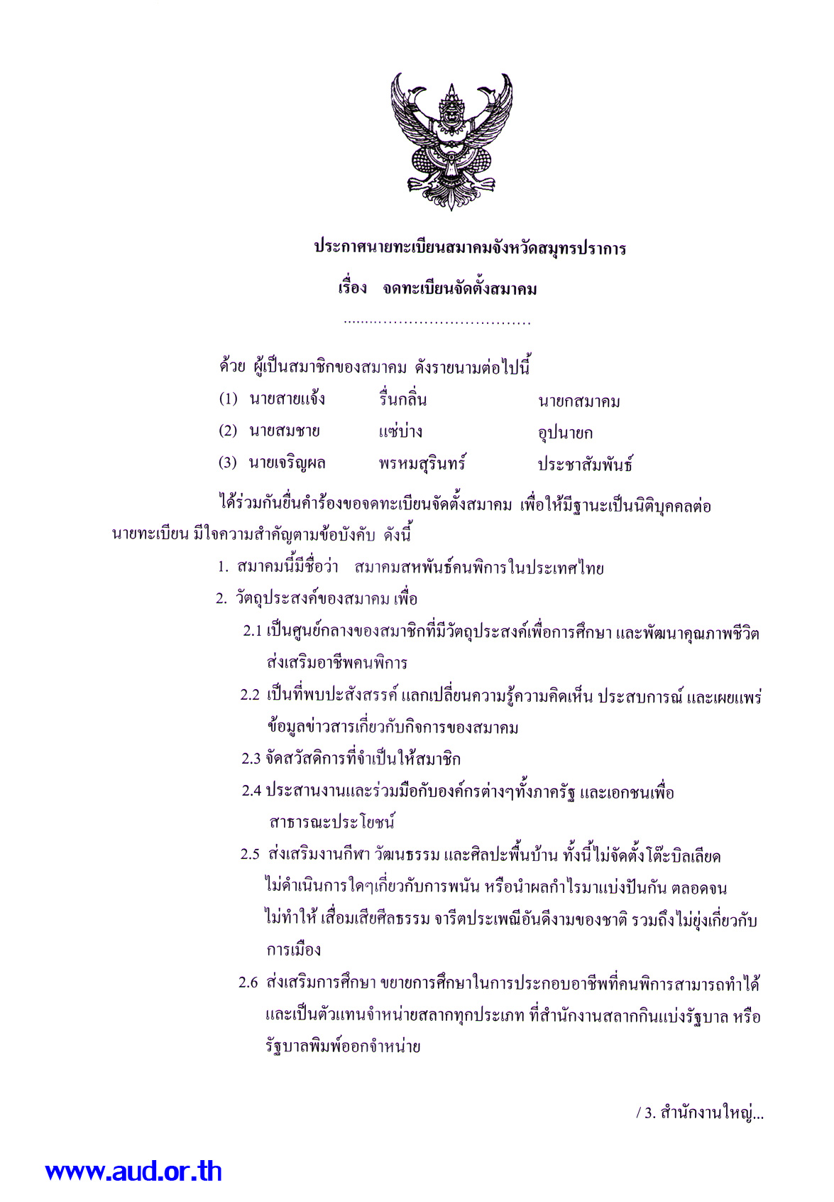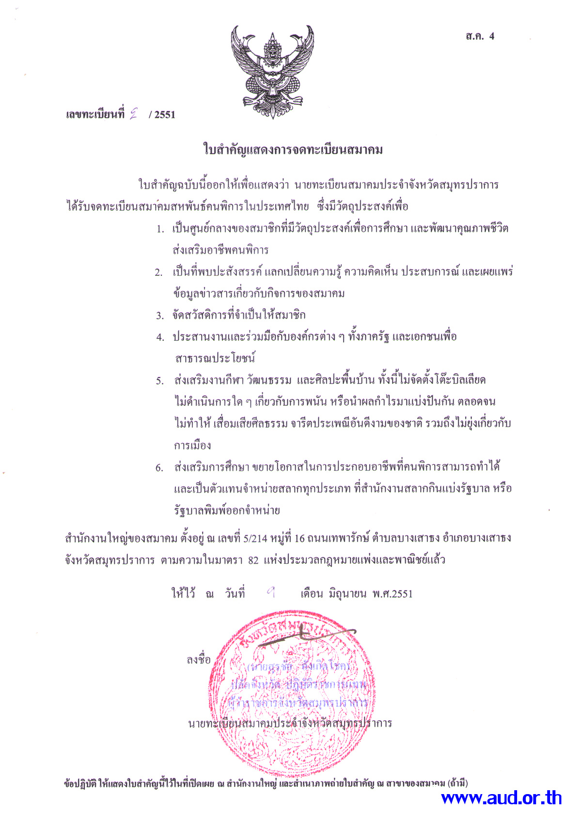 - ขอรับการสนับสนุนจากหน่วยงานทั้งภาครัฐและเอกชน ในการมรส่วนร่วมให้เป็นไปตามวัตถุประสงค์ของคณะกรรมการบริหารสมาคม และความต้องการของคนพิการในแต่ละกลุ่ม