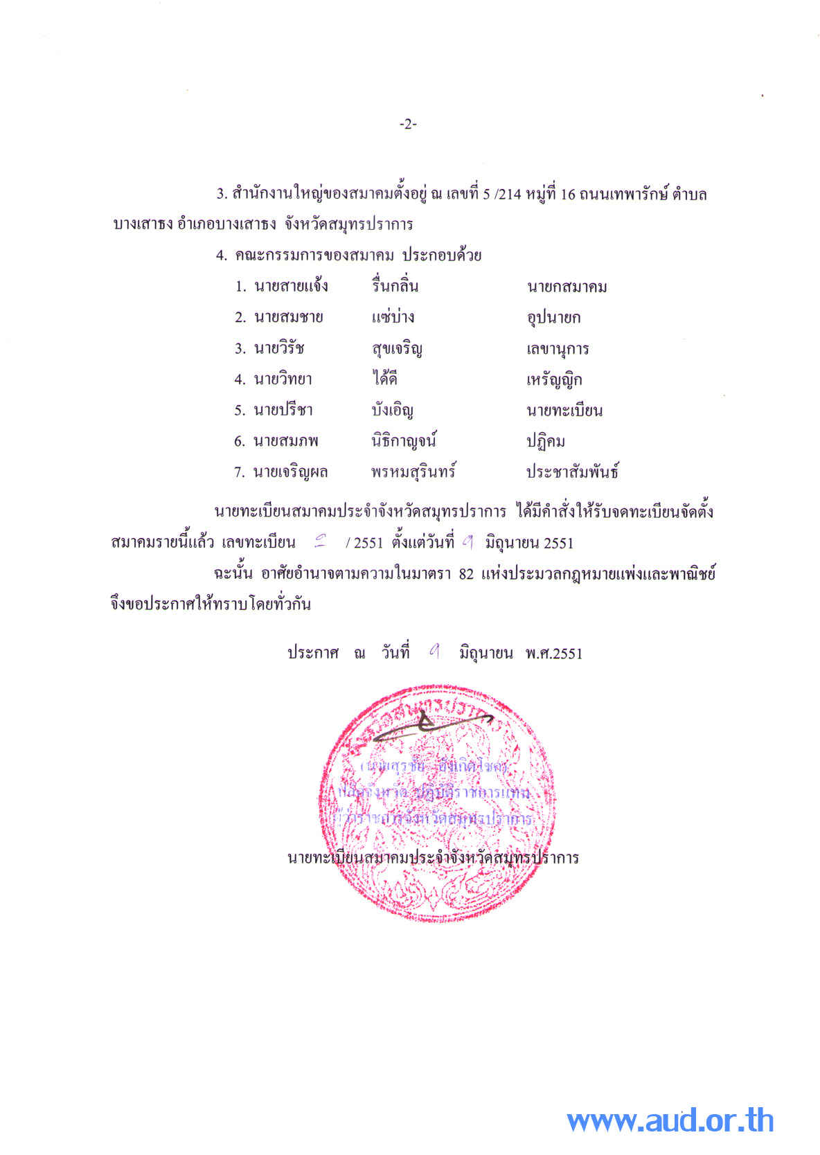 จดทะเบียนเมื่อวันที่ 9 มิถุนายน 2551 โดยมีวัตถุประสงค์ ดังต่อไปนี้