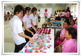 คนพิการที่ไปร่วมออกบูธแสดงสินค้าที่ผลิตจากฝีมือตนเอง